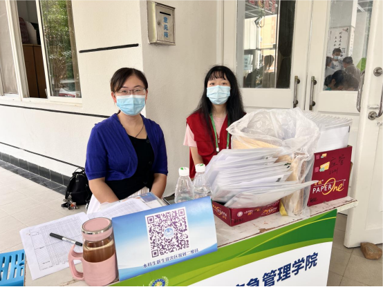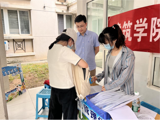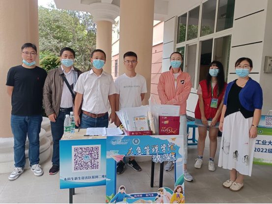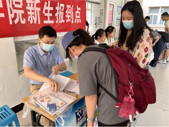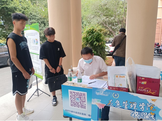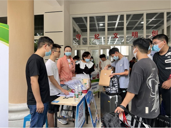 在南苑和桂苑的宿舍楼前,公司老师们齐齐出动,仔细地为新生办理“一站式”入学手续。以便捷的扫码签到,一步申领入学用品与资料,快捷的资料审核,完成系统集成化的报到流程。针对新生提出的问题,公司老师们均详细耐心地答疑解惑。