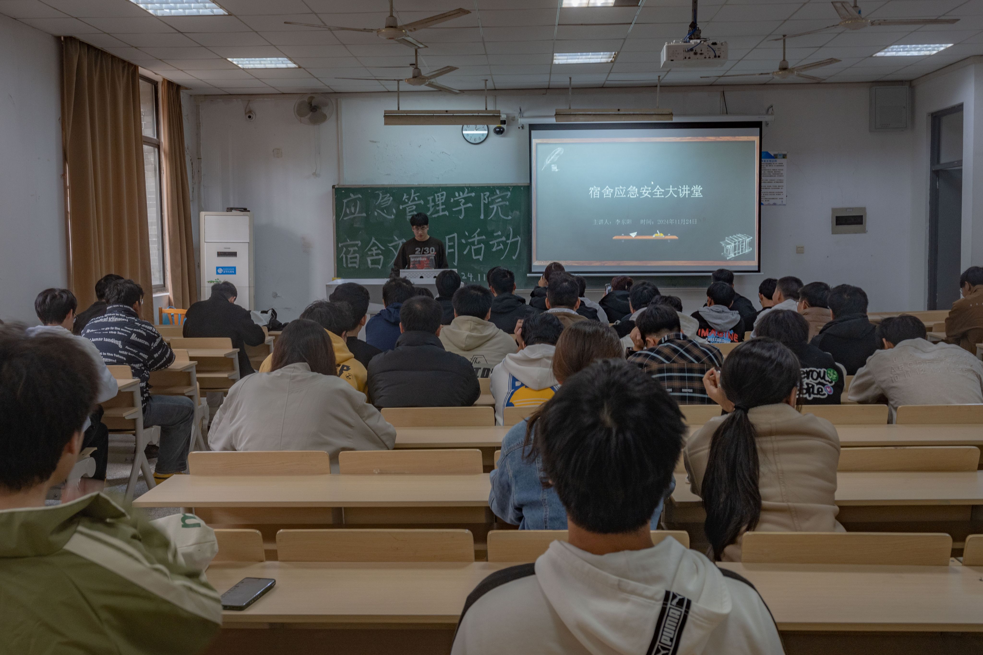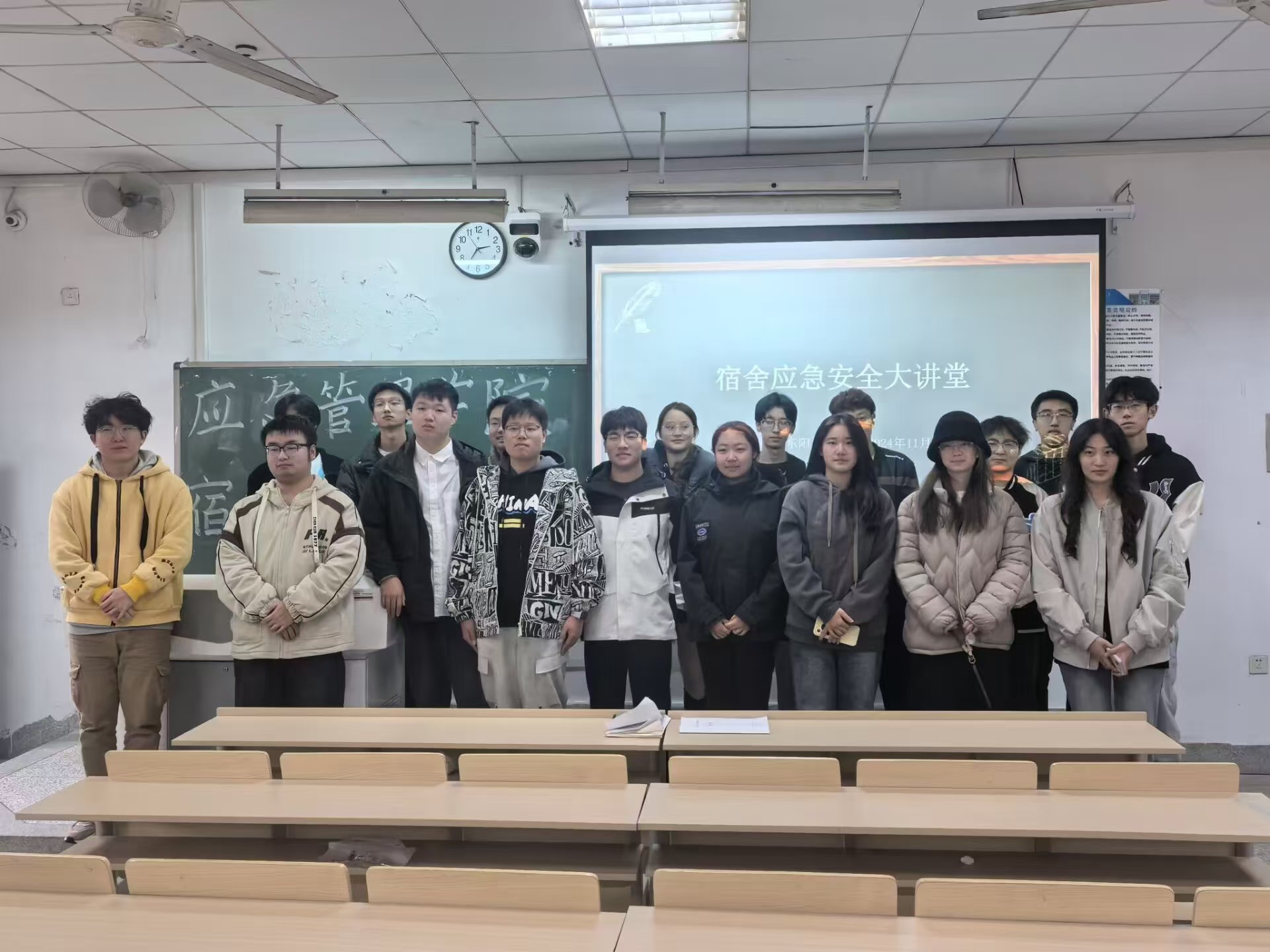 宿舍应急安全大讲堂中,李东阳同学以高校宿舍内发生火灾的视频案例为切入点,向同学们讲解用电安全、消防安全、设施安全等安全知识,让大家在提高安全意识的同时,增强自我保护能力。此外,同学们集中对宿舍墙面、地面、卫生间等进行全面清扫,确保人人行动起来、内务整洁起来、宿舍干净起来。